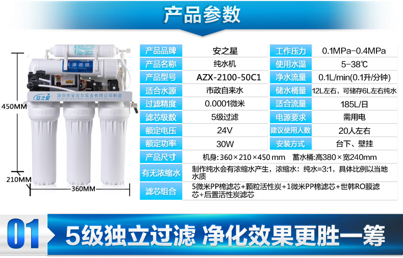 商品:制水干净,使用还满意,就是处理的废水有点多。